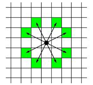 int dx[]={-1,-2,1,2,-2,-1,1,2},dy[]={-2,-1,-2,-1,1,2,2,1}; //建立偏移量数组