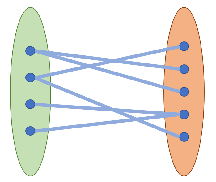 二分图的最大匹配:所有匹配中包含边数最多的一组匹配被称为二分图的最大匹配,其边数即为最大匹配数。