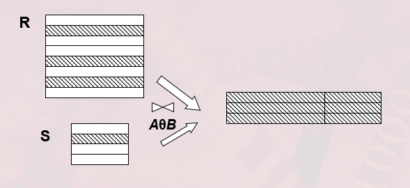- \[R \underset{A = B}{\bowtie} S = \{ \overset{\frown}{t_r t_s} | t_r \in R \land t_s \in S \land t_r[A] \theta t_s[B] \}\]