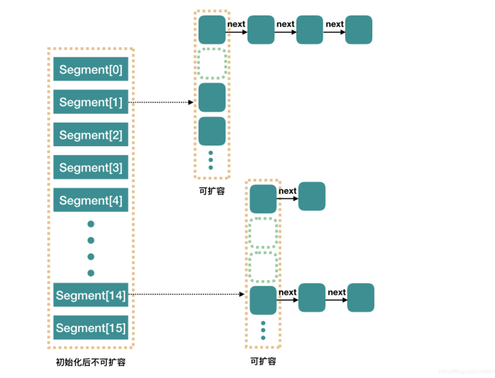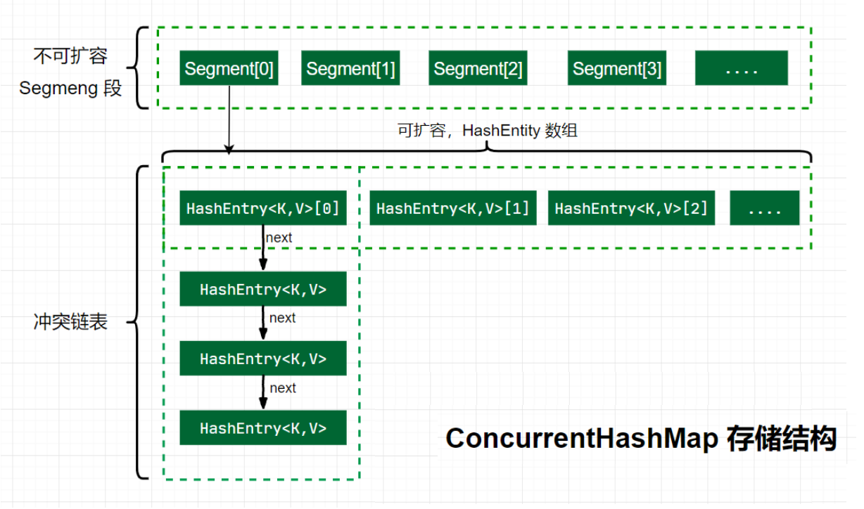 ConcurrnetHashMap 由很多个 Segment 组合,而每一个 Segment 是一个类似于 HashMap 的结构,所以每一个 HashMap 的内部可以进行扩容。