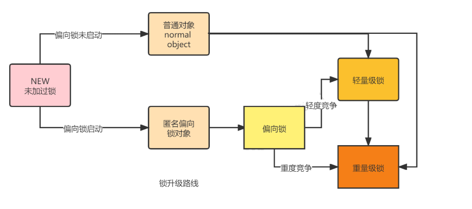 整体锁升级的过程大致可以分为两条路径,如下: